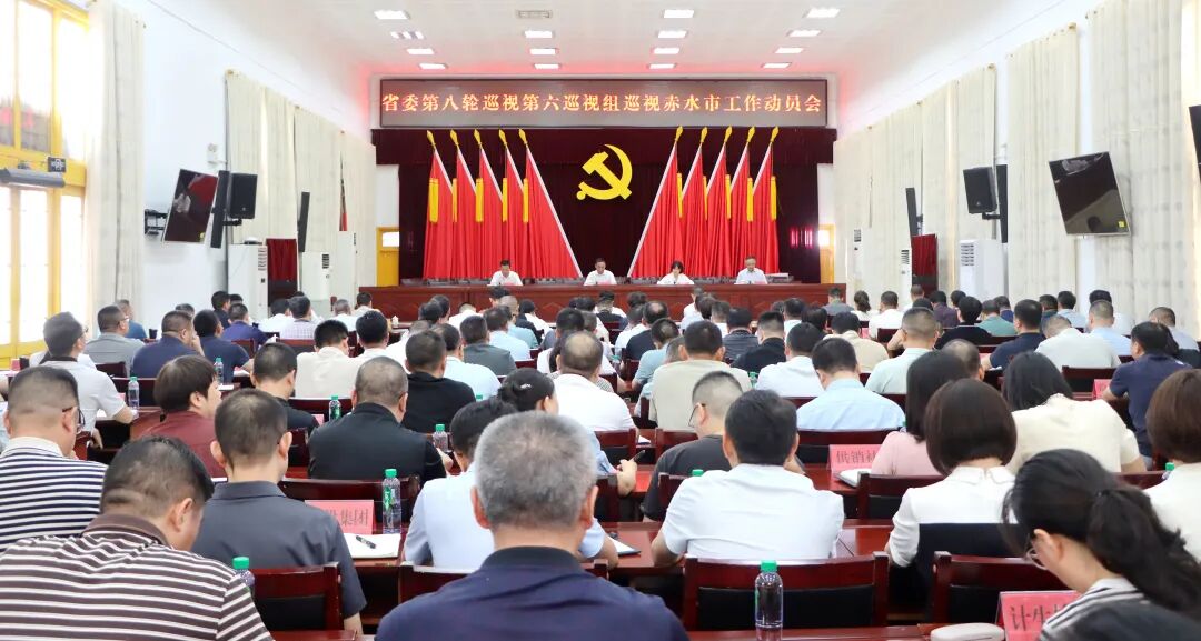 根据省委关于巡视工作的统一部署,2025年7月9日,省委第六巡视组巡视赤水市工作动员会召开。会前,巡视组与赤水市党政主要负责人进行见面沟通,通报了巡视任务和工作安排。会上传达了省委书记、省人大常委会主任徐麟在省委常委会会议听取十三届省委第四轮巡视整改和第七轮巡视工作情况汇报时的讲话精神,并宣读了对赤水市的巡视通知;省委第六巡视组组长陈金平就即将开展的巡视工作作了动员讲话;受省委常委、遵义市委书记、遵义市委巡察工作领导小组组长李睿的委托,遵义市委常委、市纪委书记、市监委主任、市委巡察工作领导小组常务副组长缪凡就赤水市配合开展巡视工作提出要求,遵义市人大常委会副主任、赤水市委书记汪能科就配合做好巡视工作作了表态发言。