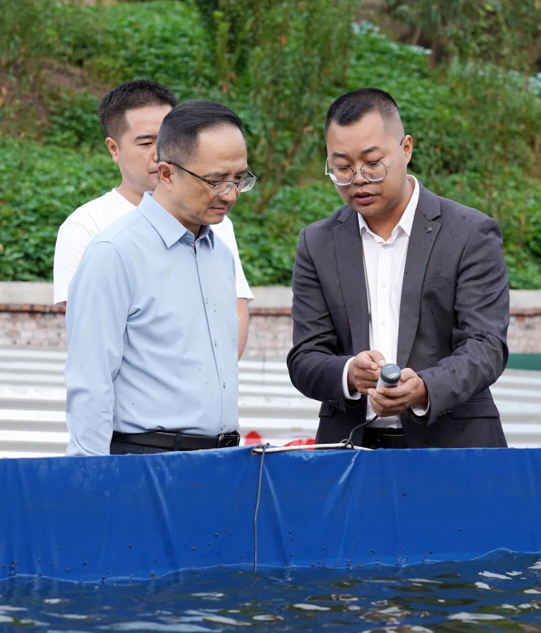 汪能科到石堡乡了解大滩村高密度水产养殖项目情况。