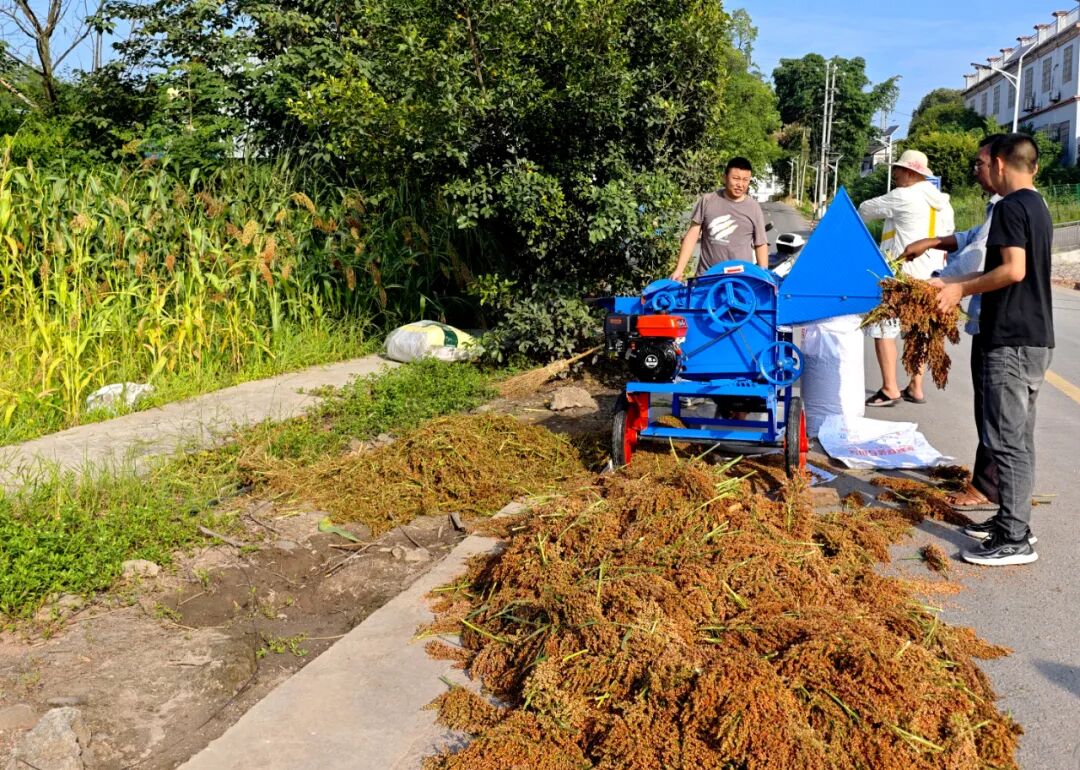 抢收红高粱!星光村集体经济脱粒机吐出“黄金雨”